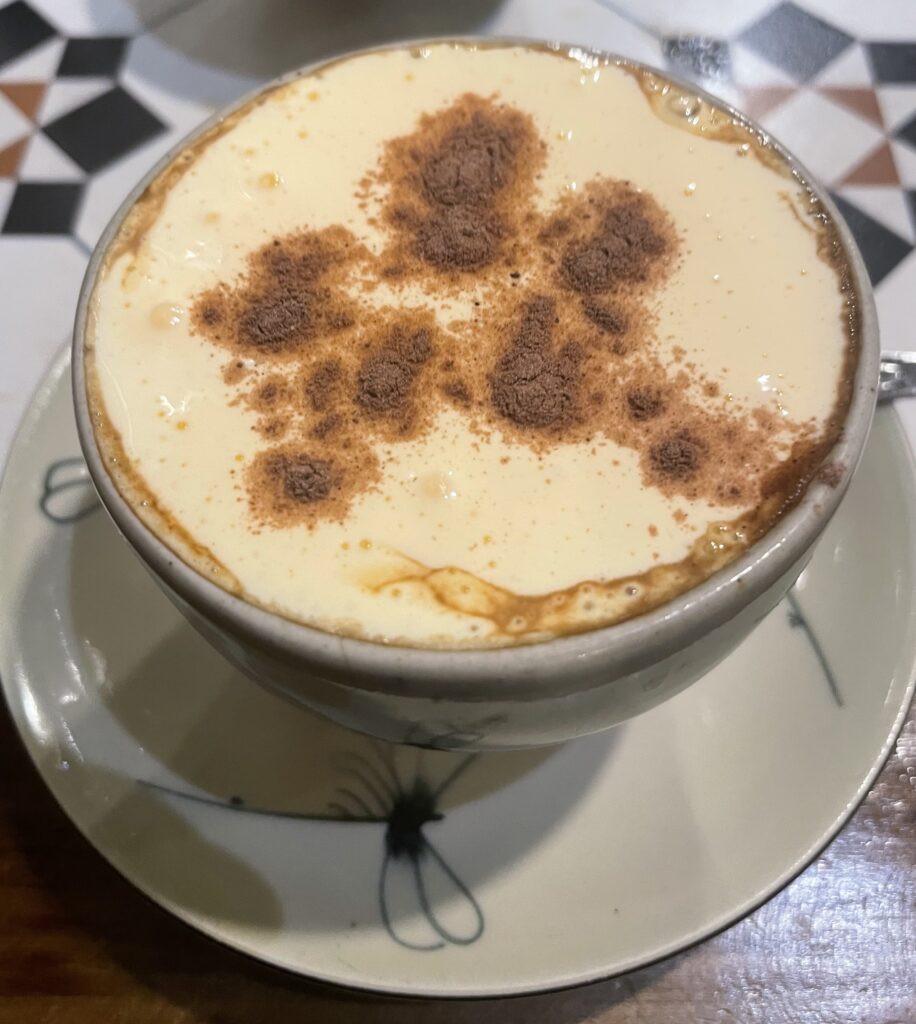 エッグコーヒーは、濃いめのブラックコーヒーの上に、卵黄、砂糖、コンデンスミルクをふわふわに泡立てたカスタード状のクリームをのせた、ベトナム伝統の飲み物です。