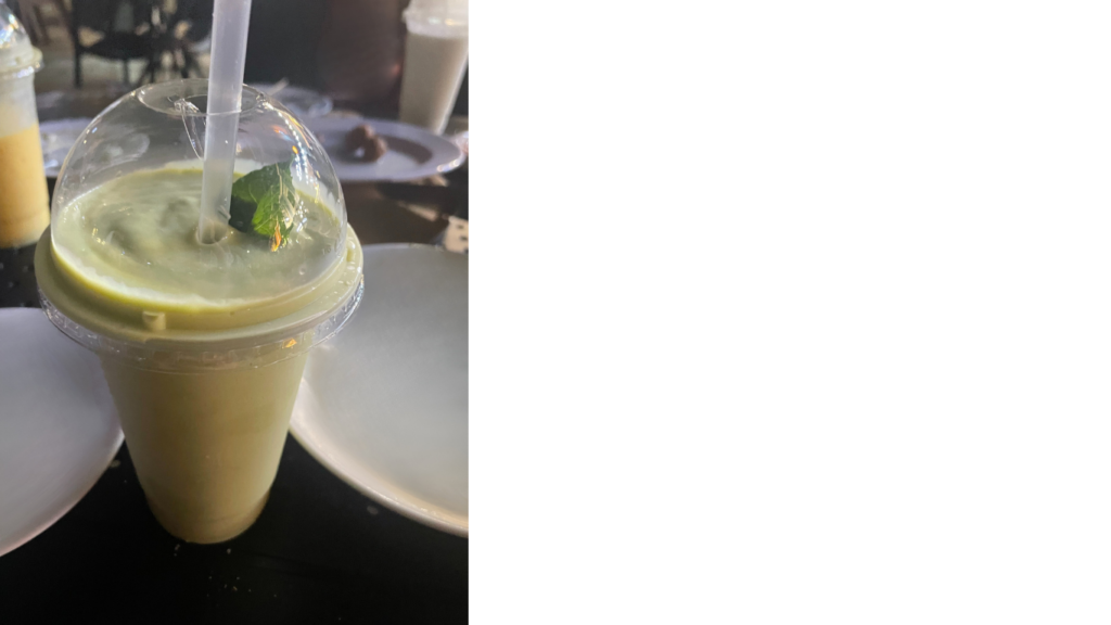 今回私が注文したのは、日本ではなかなかお目にかかれないアボカドのシントーです。アボカド独特のクセや青臭さはほとんどなく、とにかくクリーミーで濃厚!! まるで高級なバニラシェイクを飲んでいるような贅沢な味わいでした。これはリピ確定の美味しさです。この絶品シントーを片手に楽しんだのが、グランワールドの水上ショー
